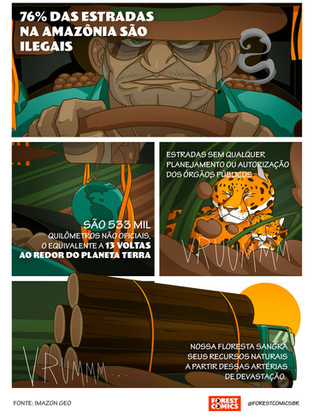 Infographics in comic format. Focused on distribution in social media through the Forest Comics page on Facebook, Forest's independent project is a universe with its own characters and language. The idea is to bring relevant data and information from research and reliable sources in a light and fun way.